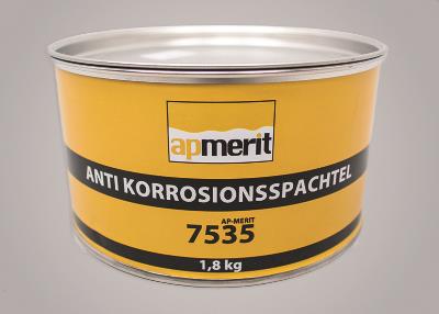 AP-Merit 7535 Anti-Korrosionspachtel ist ein Füll- und Finishspachtel mit Haftung auf Stahlblech, verzinkten Blechen, Aluminium, verzinnten Flächen, GFK und Holz, der auf Metalluntergründen einen sehr hohen Korrosionsschutz gewährleistet. Dadurch kann auf die sonst übliche Praxis, Rostschutzgrundierungen vor dem Überspachteln von Stahlblech zu applizieren, verzichtet werden. Dies bietet vor allem bei der Oldtimerrestauration oder bei Arbeiten, bei denen hoher Korrosionsschutz gefordert wird, einen großen Vorteil. Kurze Trockenzeit und leichte Schleifbarkeit sind weitere Merkmale dieses Spitzenprodukts. Mit Füllern überlackierbar.